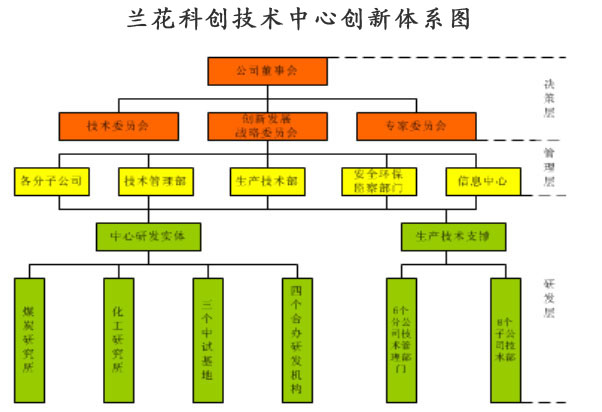 公司技術(shù)創(chuàng)新體系是以技術(shù)中心為核心,按照現(xiàn)代化企業(yè)管理層次、制度的模式,根據(jù)“蘭花”實際情況,采用“三層”創(chuàng)新體系。